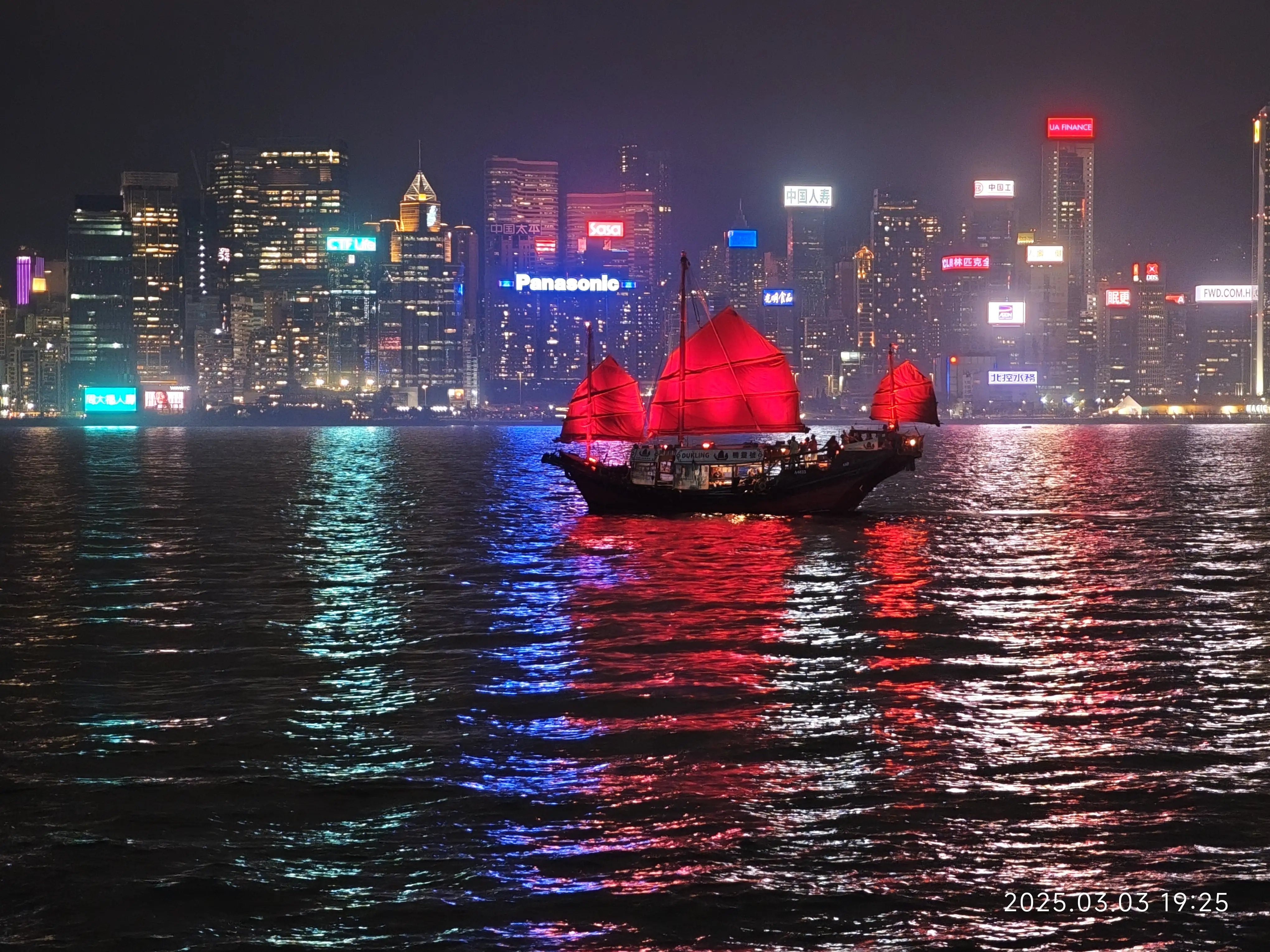 灯光璀璨的夜景之下 ,一艘来自18世纪的帆船航行在维港之上,恍惚中,触碰到了另一个时空。