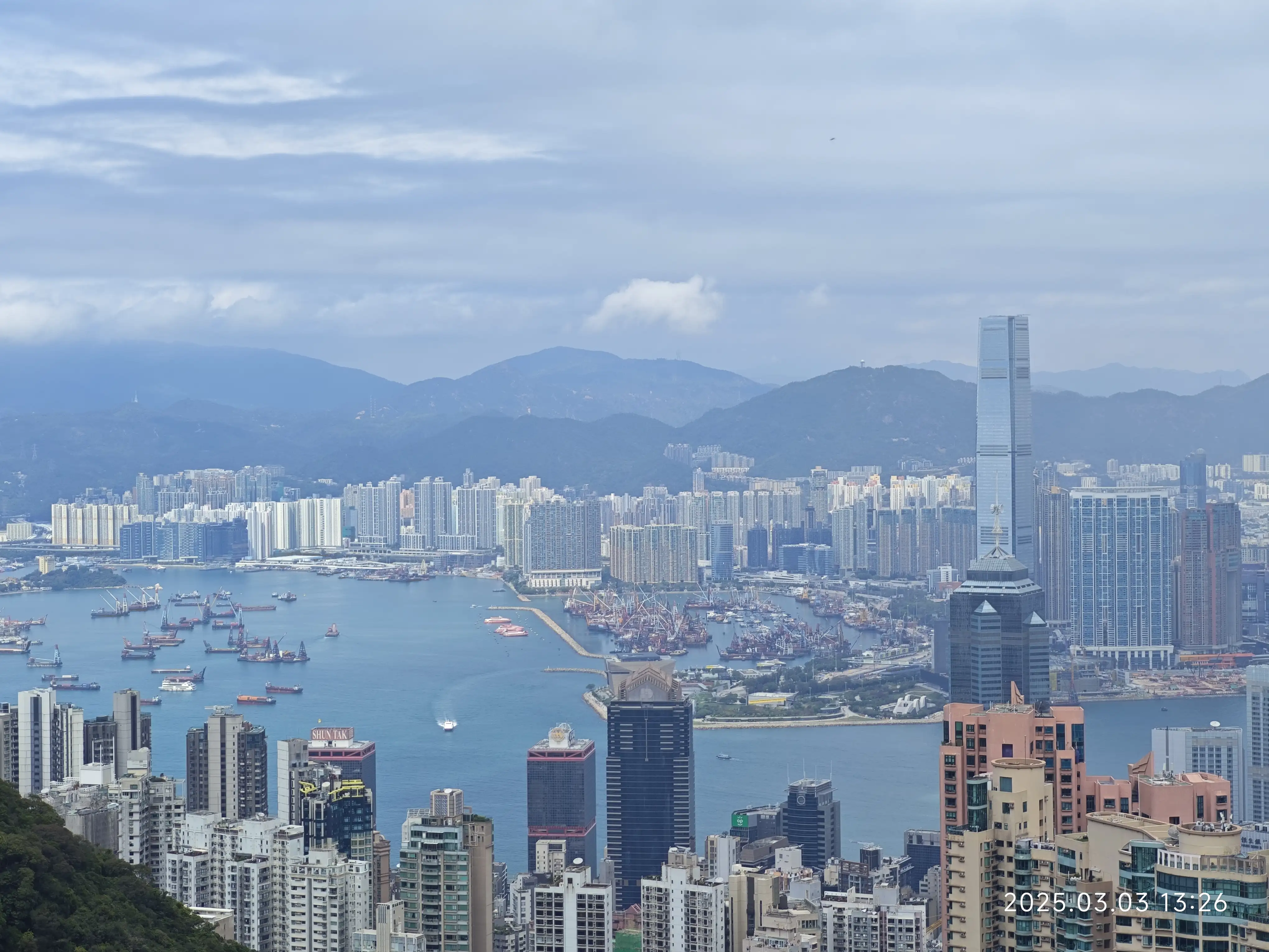 在太平山上拍摄的维多利亚港