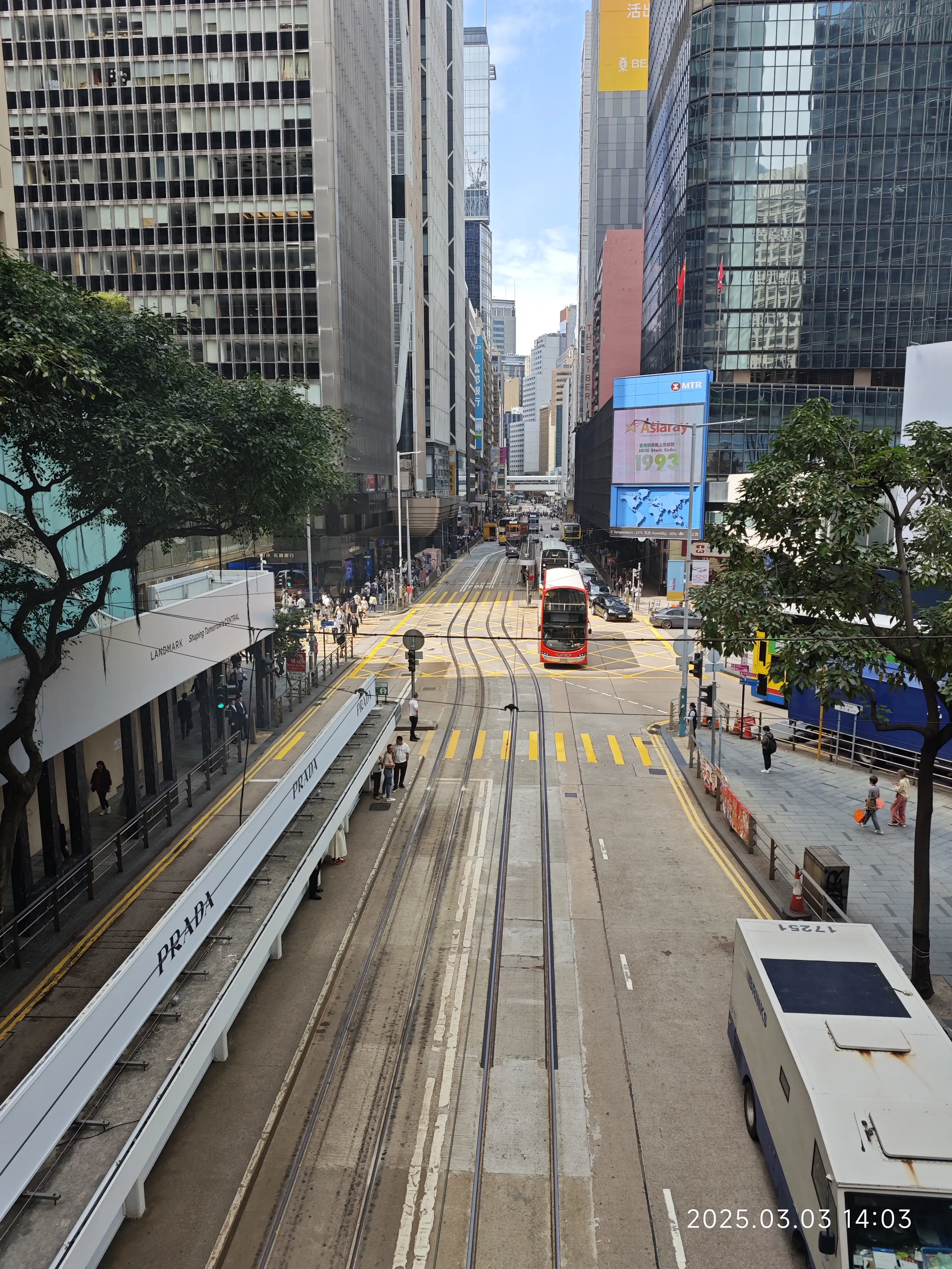 香港的街道要我怎么说呢…?人车分离做的很好,过红绿灯路口的行人信号灯会发出声音,作为服务无障碍人士的一部分。但街道很瘦小,单车道和双车道居多,行人的通道很瘦小,人与人相遇的时候要专门注意错身而过以避免碰到其他人。香港的汽车看起来亮晶晶的,据说是因为->为什么香港的车辆看起来很新?