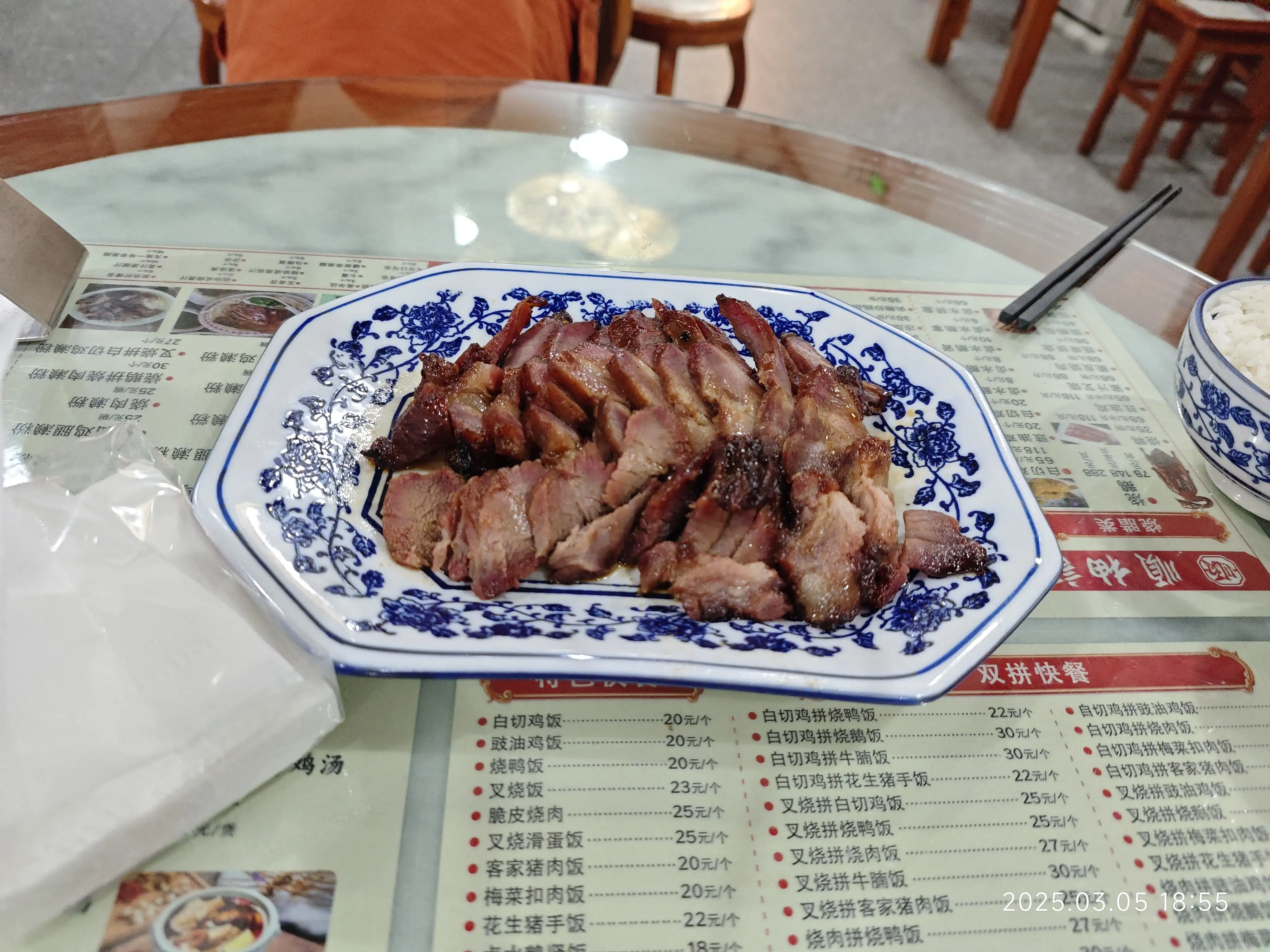 晚上,菠萝前辈带我吃了叉烧(烧腊),吃起来像是蜜汁猪肉一样的东西,吃多了感觉会很腻,但初尝的时候尚可。